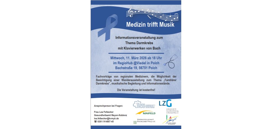 „Medizin trifft Musik“ - Informationsveranstaltung zum Thema Darmkrebs am 11.03.2026 in Polch